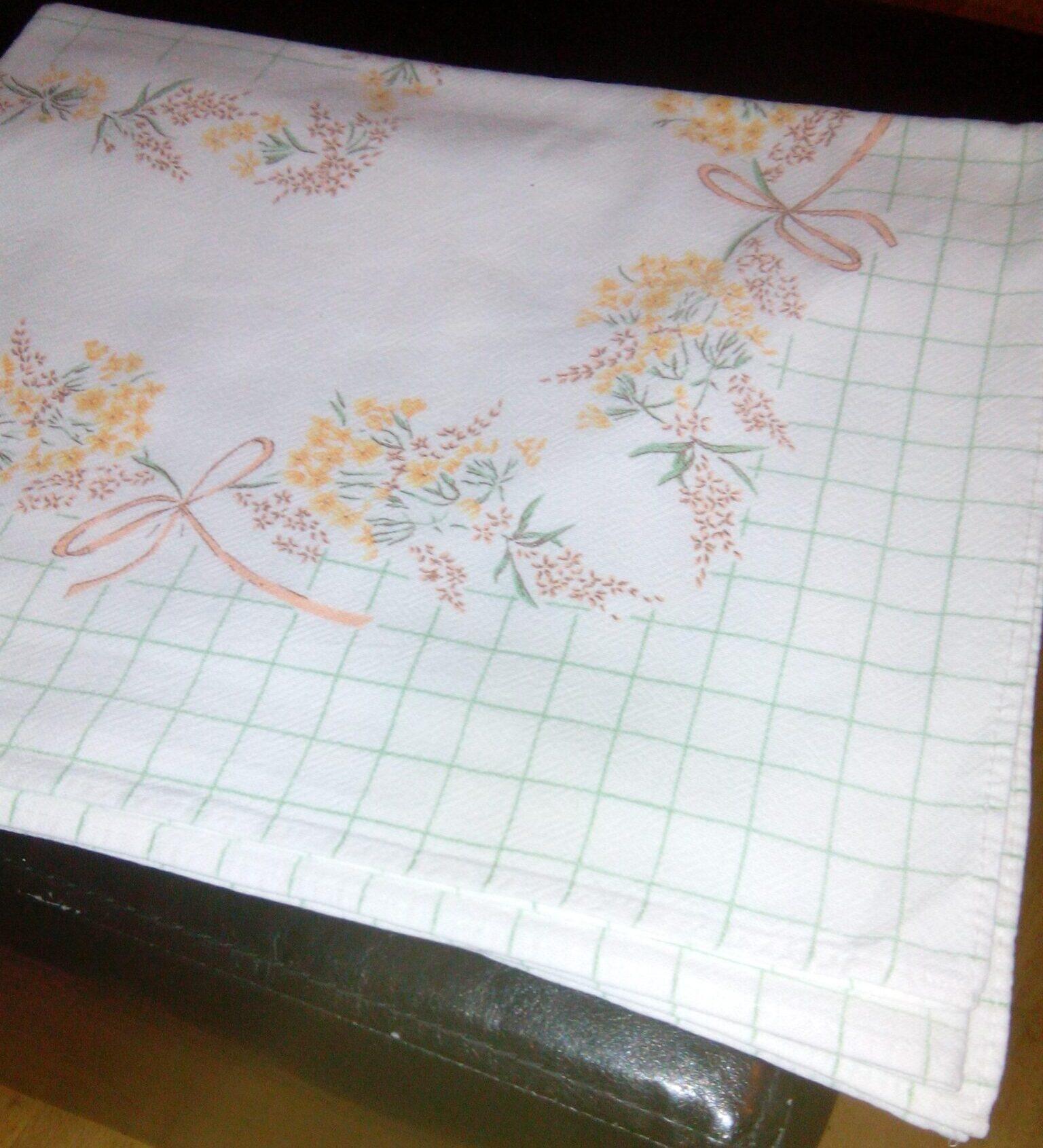 Tovaglia bianca con righe verdi e fiori misura 140x120 cm